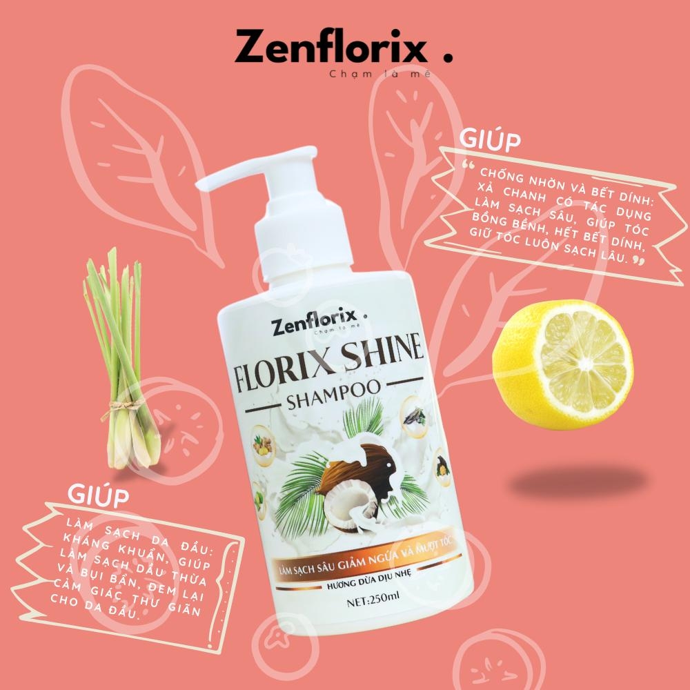 Zenflorix Dầu gội Florix Shine hỗ trợ làm sạch gàu và giảm ngứa da đầu dầu gội